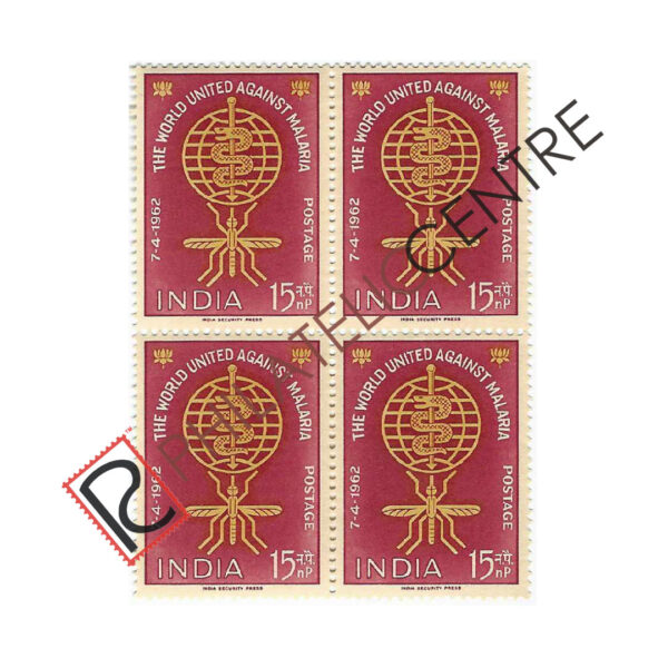 INDIA MINT BLOCK OF FOUR: 1962 APRIL 07 MALARIA ERADICATION. 15NP EMBLEM