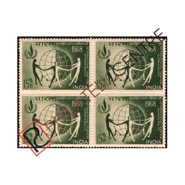 Be the first to review “INDIA MINT BLOCK OF FOUR: 1968 JANUARY 01 INTERNATIONAL YEAR FOR HUMAN RIGHTS. 15P MEN EMBRACING GLOBE”