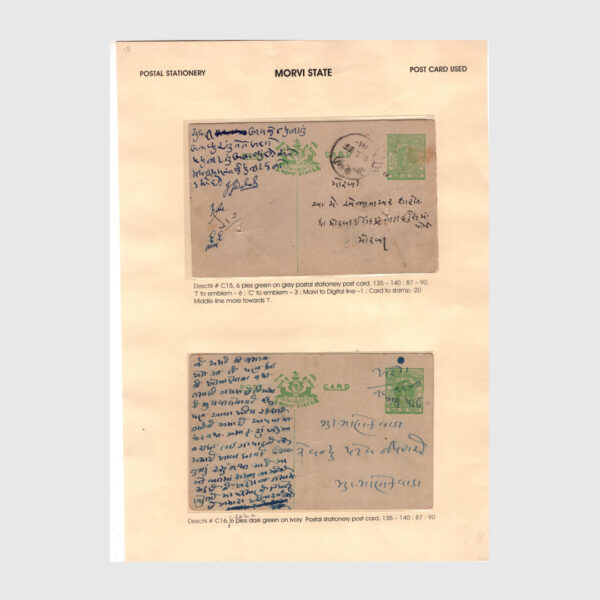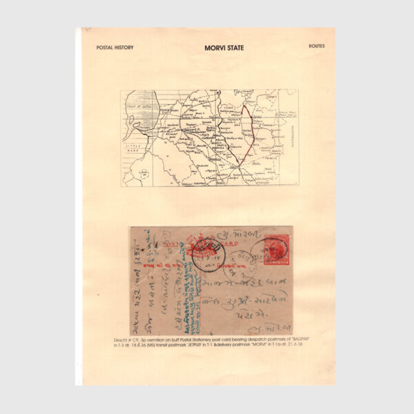 An unrepeatable detailed written up collection of Morvi state postal stationery & postal history Collection of Postal Stationery 56 different & Postal History with route maps – 88 items