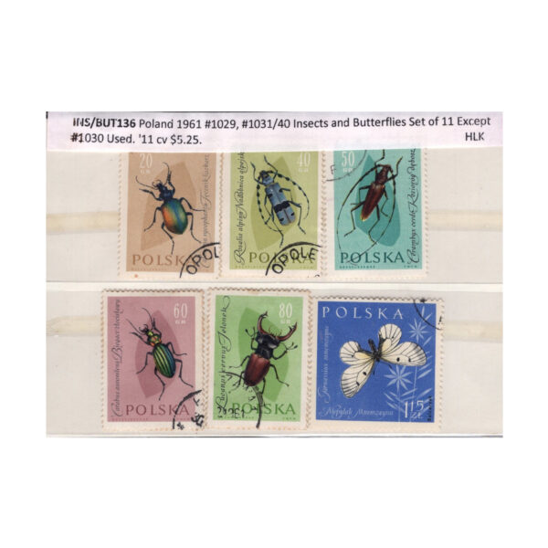 INS/BUT136 Poland 1961 #1029, #1031/40 Insects and Butterflies Set of 11 Except #1030 Used. ’11 cv $5.25.