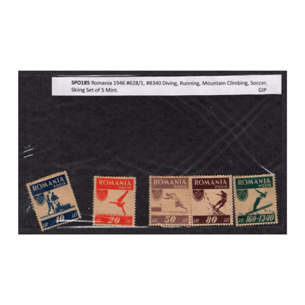 SPO185 Romania 1946 #628/1, #B340 Diving, Running, Mountain Climbing, Soccer, Skiing Set of 5 Mint.