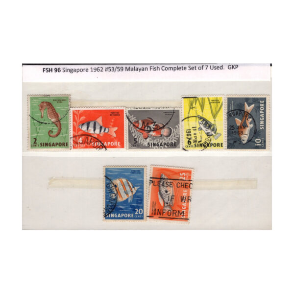 FSH 96 Singapore 1962 #53/59 Malayan Fish Complete Set of 7 Used.