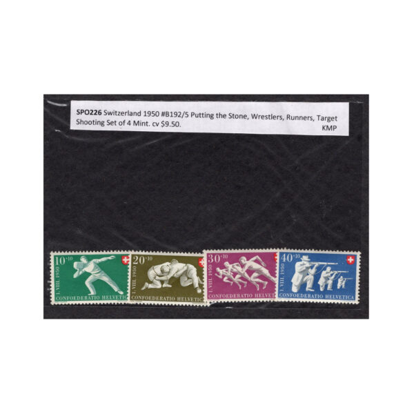 SPO226 Switzerland 1950 #B192//5 Putting the Stone, Wrestlers, Runners, Target Shooting Set of 4 Mint. Cv $9.50.