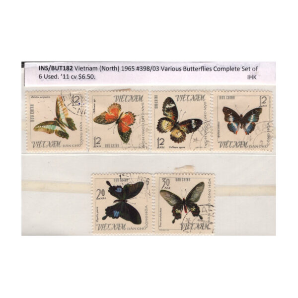 INS/BUT 182 vietnam (North) 1965 #398/03 various Butterflies Complete Set of 6 Used. ’11 cv $6.50.