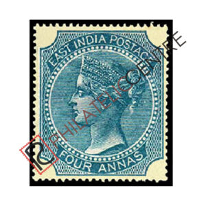 PC83: BRITISH INDIA MINT STAMP: 1866 AUGUST 01 - 1878 WMK ELEPHANT HEAD. 4A BLUE GREEN (DIE II)