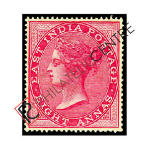 PC85: BRITISH INDIA MINT STAMP: 1868 JANUARY 01 8A DIE II ORNAMENTS REDRAWN. WMK ELEPHANT HEAD. 8A ROSE (DIE II)