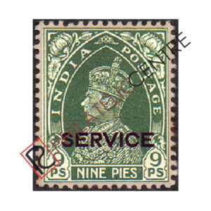 PCS14: BRITISH INDIA MINT STAMP: BRITISH INDIA OFFICIALS : 1866 OCTOBER FISCAL STAMPS OVERPRINTED &/OR SURCHARGED. TOP & BOTTOM INSCRIPTIONS PORTIONS CUT OUT.WMK.CROWN ON TOP & INDIA AT BOTTOM : B) OVERPRINTED"SERVICE POSTAGE"IN SERIF (WITHOUT PERIOD) IN GREEN ON 1/2ANNA RECEIPT STAMP IN SEMI CIRCLE. 1/2A MAUVE/LILAC