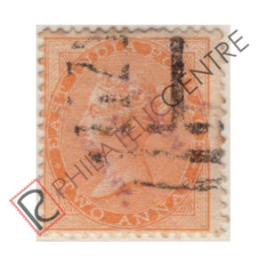 BRITISH INDIA USED STAMP: CROWN COLONY : 1865 PAPER WHITE TO YELLOWISH. WMK ELEPHANT HEAD. 2A YELLOW