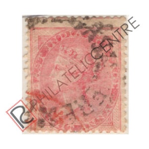BRITISH INDIA USED STAMP: CROWN COLONY : 1865 PAPER WHITE TO YELLOWISH. WMK ELEPHANT HEAD. 8A CARMINE