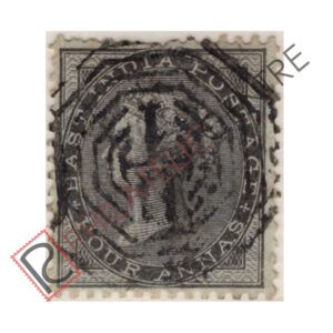 BRITISH INDIA USED STAMP: EAST INDIA STAMPS : 1855 OCTOBER 01 BLUISH GLAZED PAPER (DEEP BLUE TO ALMOST WHITE). NO WMK. 4A BLACK ON BLUISH