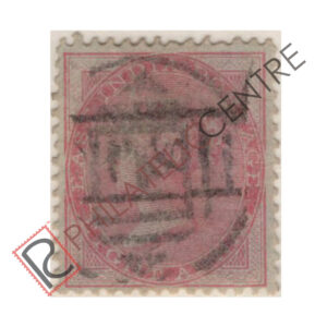 BRITISH INDIA USED STAMP: EAST INDIA STAMPS : 1855 OCTOBER 01 BLUISH GLAZED PAPER (DEEP BLUE TO ALMOST WHITE). NO WMK. 8AS CARMINE ON BLUISH